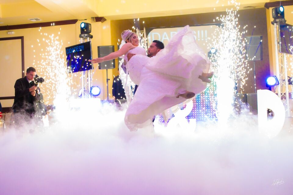 Bailando en las nubes, pirotecnia inalambrica y lluvia de confeti.